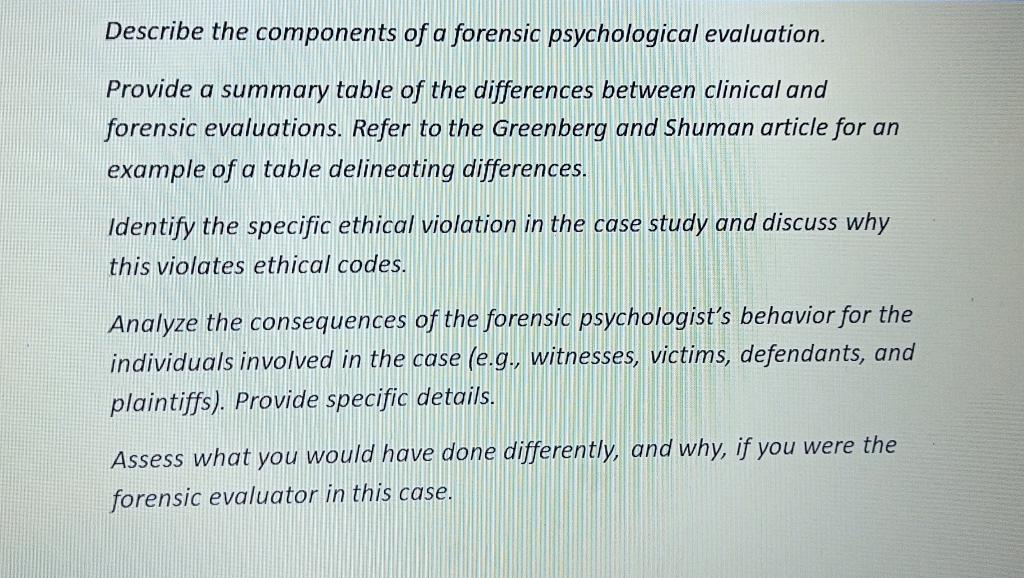 Solved Describe The Components Of A Forensic Psychological Chegg Com